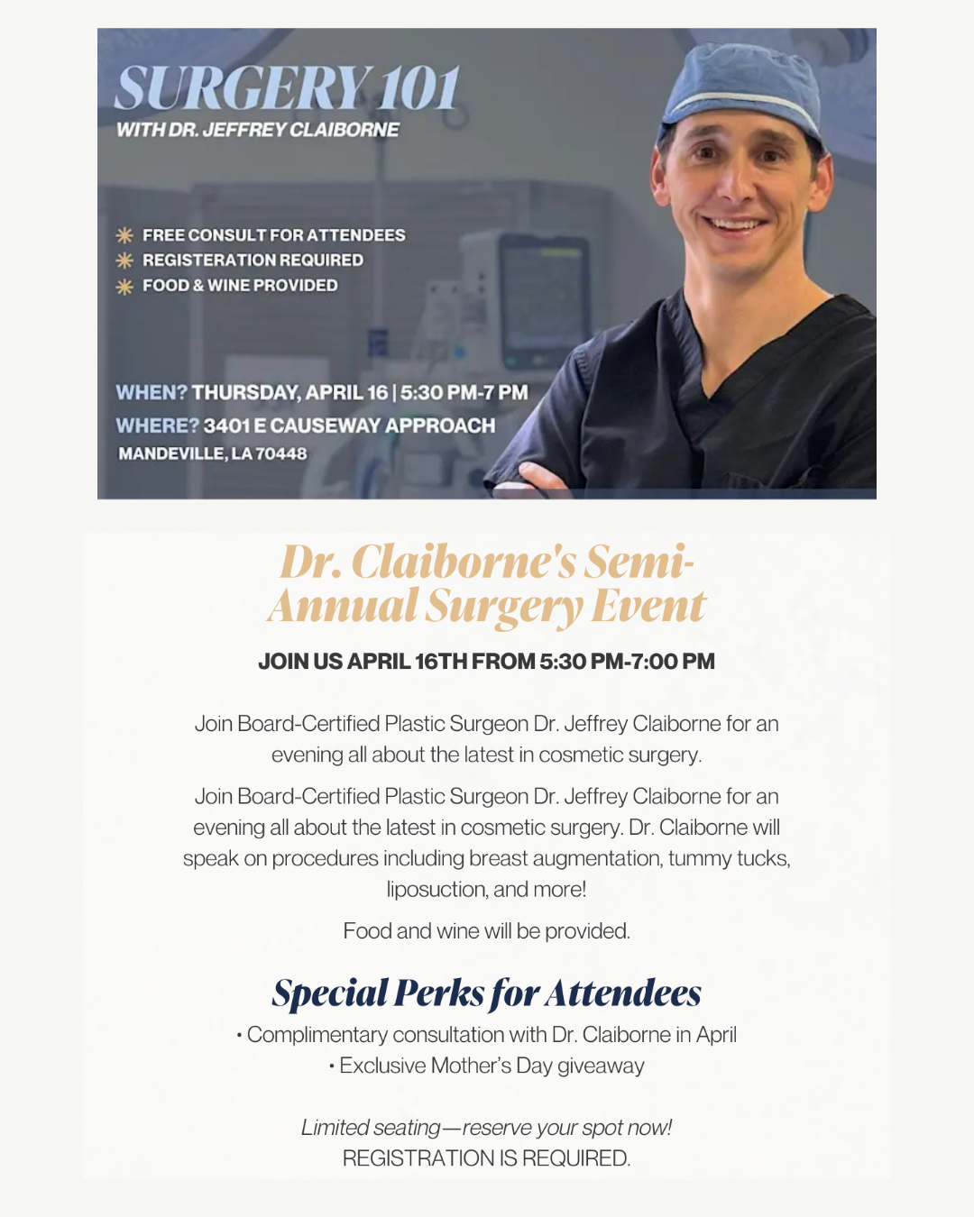 Check out these attractive specials offered at Dr. Boudreaux and Dr. Claiborne's high-end practice, located about 40 minutes north of New Orleans.